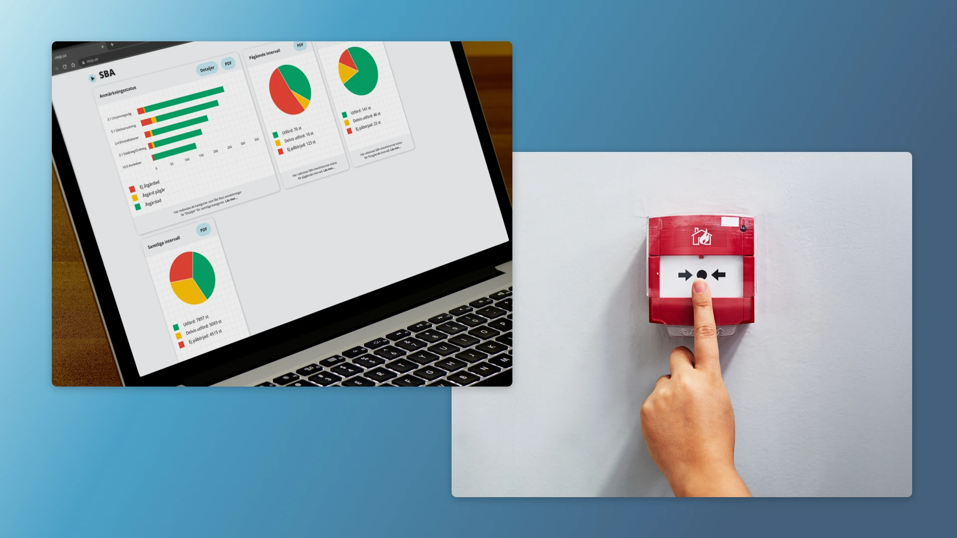 Modulen hanterar leverans- och revisionsbesiktningar av brandlarm enligt Brandskyddsförening Sveriges normer och regelverk.