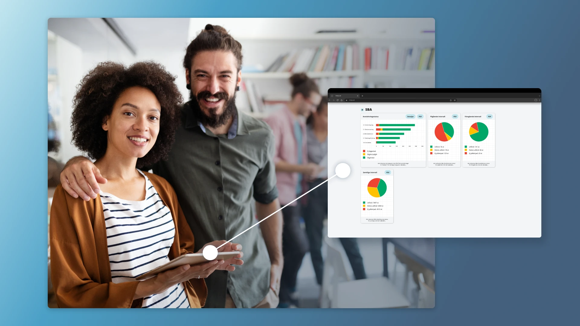 - SBA arbetet kan ibland vara svårt att följa upp → erbjud organisationen en gemensam arbetsyta/struktur där användarna kan följa hur arbetet går.